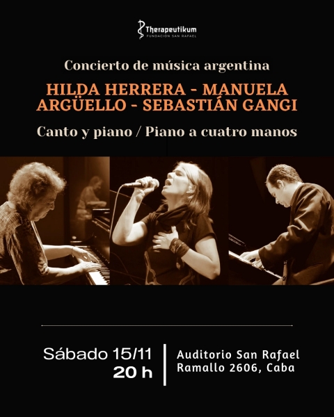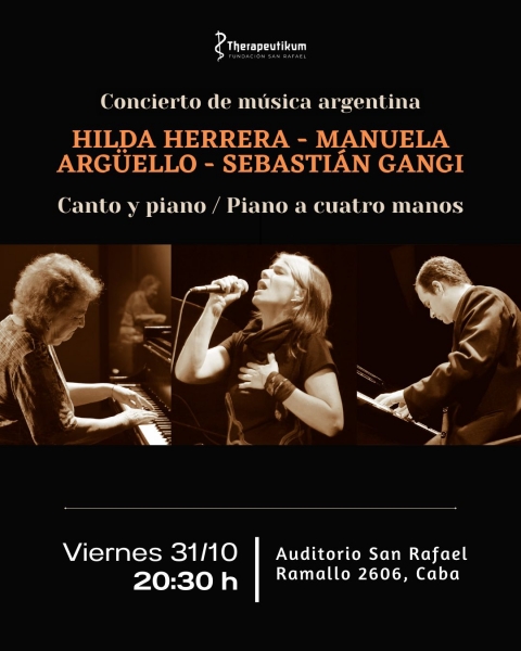 El Auditorio San Rafael vuelve a ser escenario de una noche dedicada a la música argentina. En esta ocasión reunirá a tres grandes artistas: Hilda Herrera, Manuela Argüello y Sebastián Gangi.