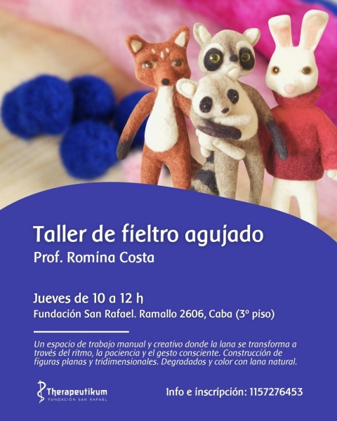 En este taller vas a aprender a trabajar con lana natural utilizando la técnica de fieltro agujado, explorando formas, texturas y colores. No se requieren conocimientos previos, está pensado tanto para quienes recién empiezan como para quienes quieran profundizar en la técnica.